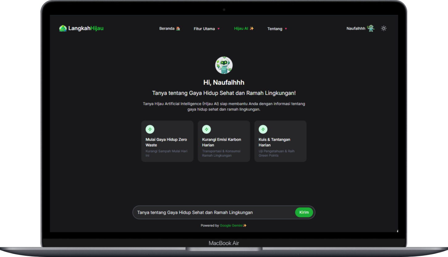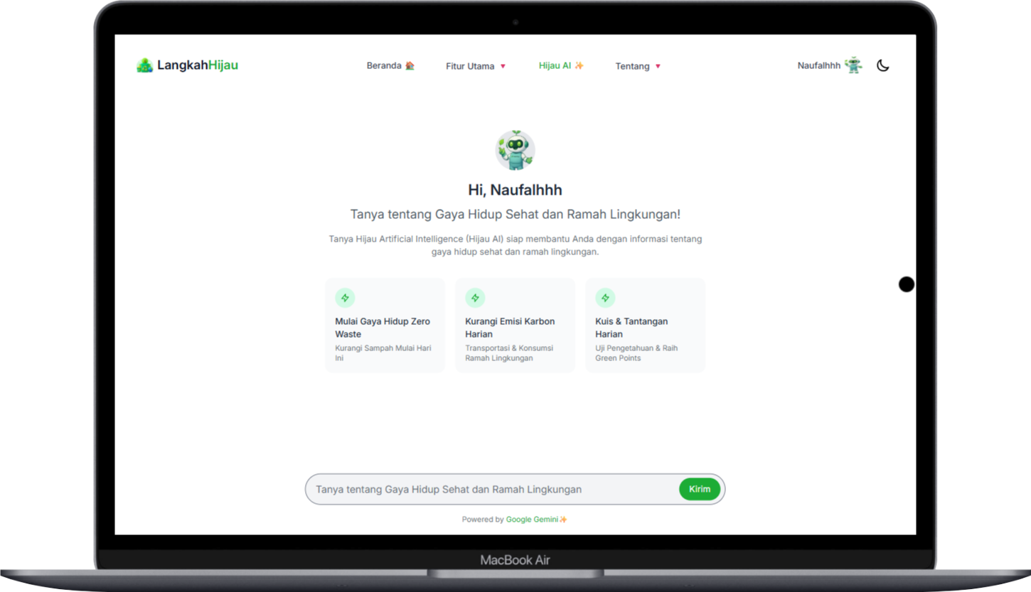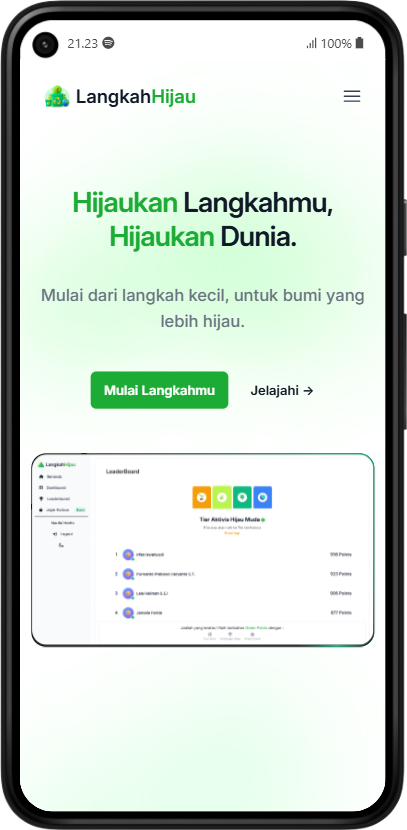 - Membangun motivasi melalui sistem Green Points, badge, dan tantangan—karena setiap langkah hijau layak dihargai.