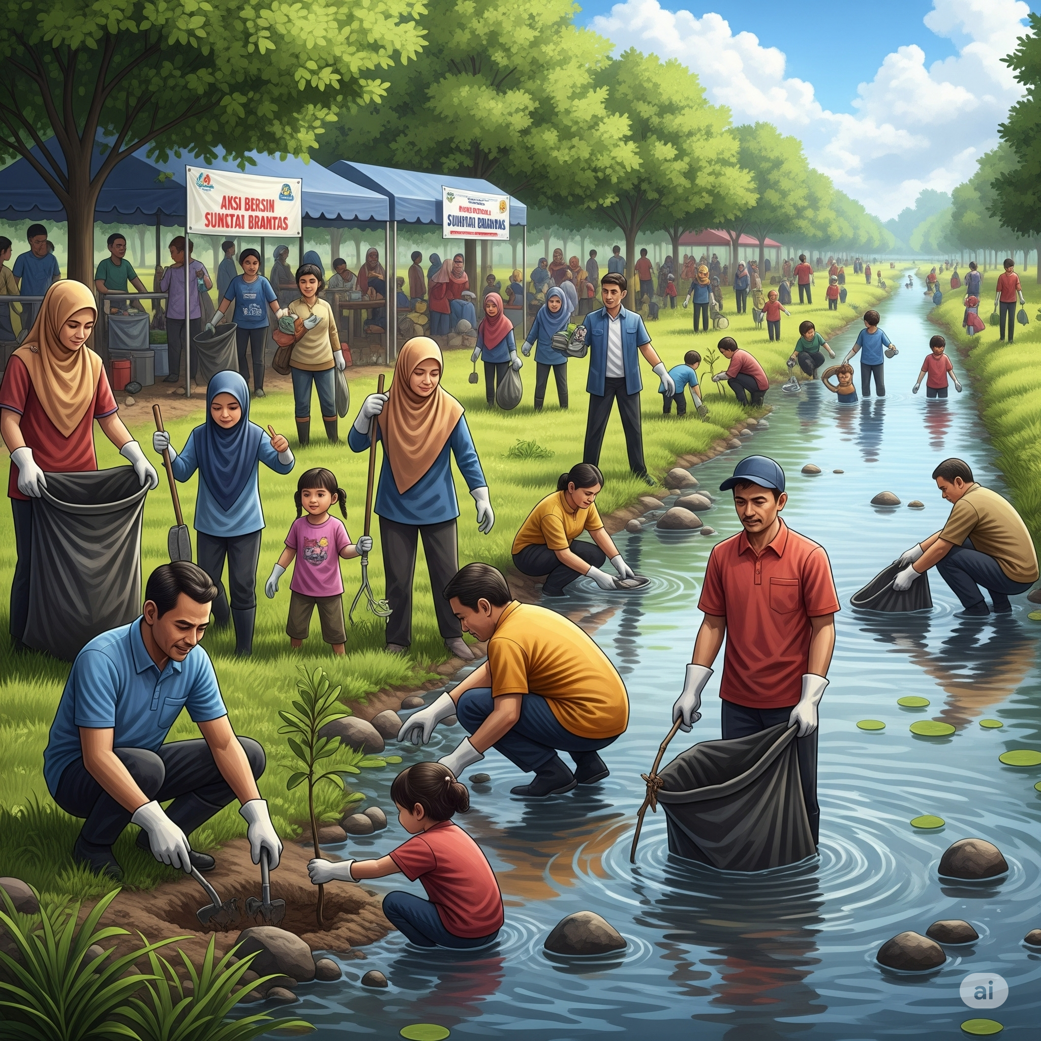 Bersama menjaga sungai dengan kegiatan bersih-bersih komunitas.